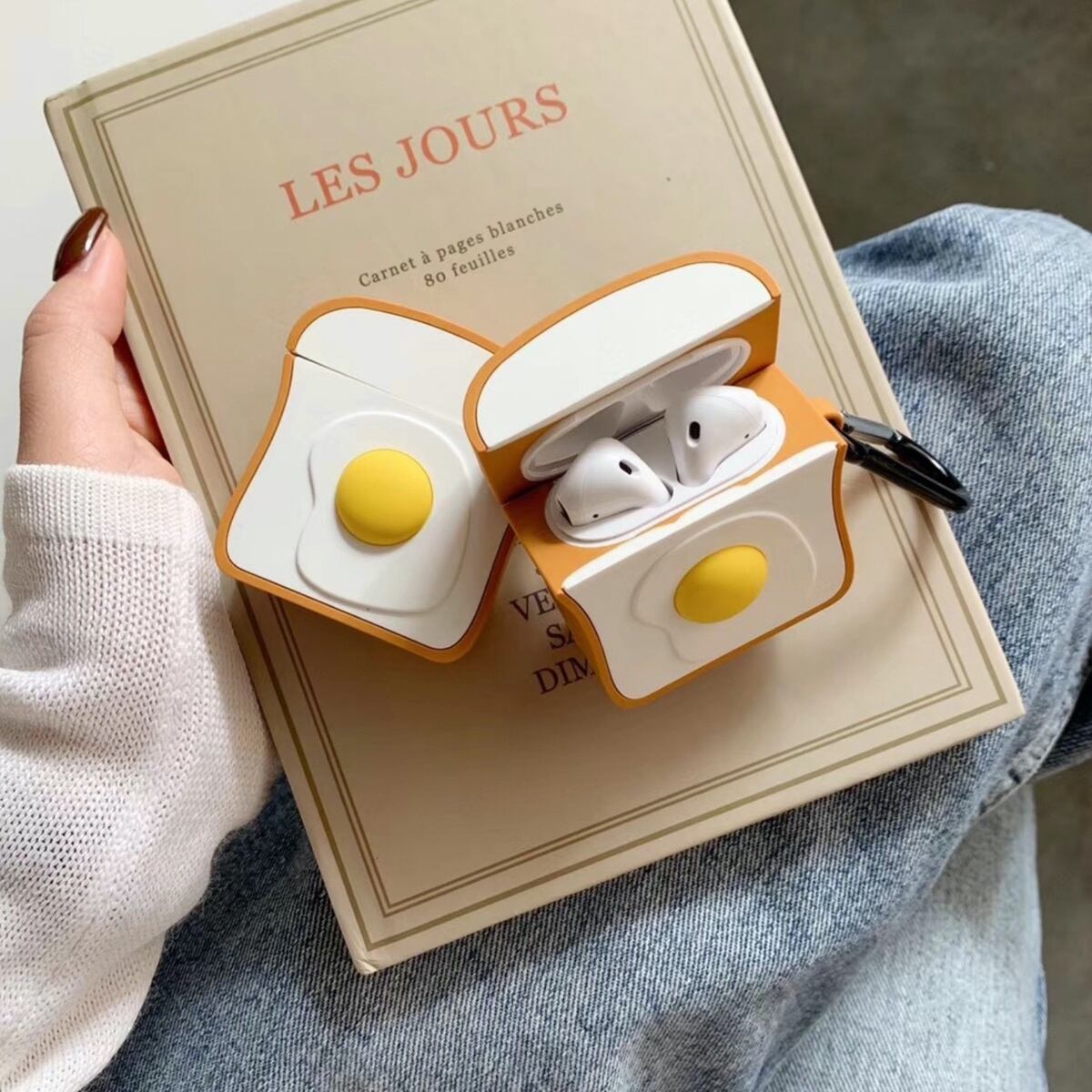 Airpods ケース 韓国 目玉焼きトーストケース エアポッズ エアポッド シリコン かわいい 大人 可愛い お洒落 イヤホンケース 女性 フック付き セレクトショップオンリーユー